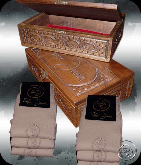 Beautiful gift box walnut carved entirely by hand and accompanied by high quality socks in our range of Modal Prestige. Experience the incredible softness of these socks to virtues antiperspirant in a case of emergency.